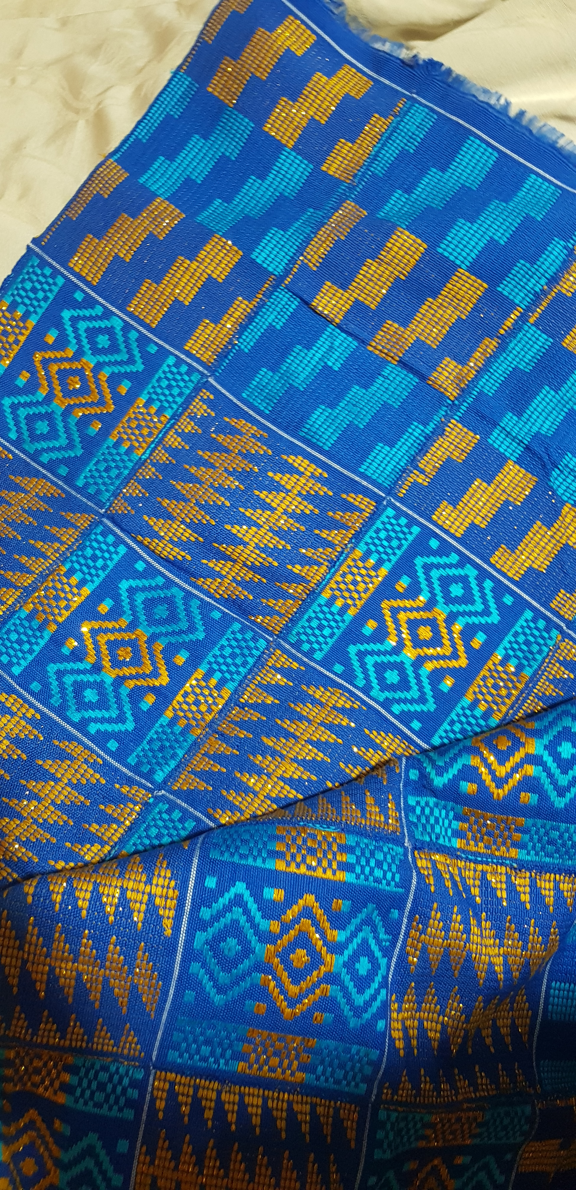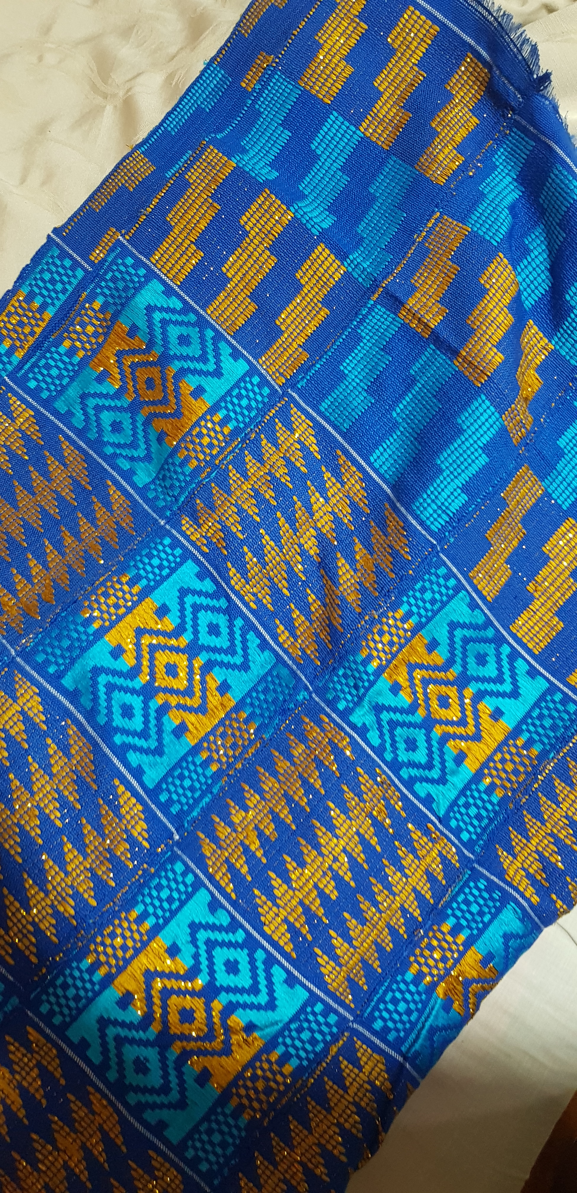 According to the weavers of Bonwire, the practice of weaving began with two hunters observing a spider. They began by weaving baskets began weaving cloth once they began trading with Europe and obtained silk thread (They now use Chinese polyester thread). I find that interesting. Although it was still a long time ago, with how staple the cloth is I thought it would have been something that preceeded European interaction but it makes sense. Apparently they used to wear animal skins before. When making the cloth, weavers weave patterns in strips and then sew them together to make the cloth. Depending on the weaving style (single weave up to triple weave), the designs can range from very simple to very complex. After observing someone weave, we had the opportunity to buy kente and kente products directly from people. Among other products I bought 2 yards of triple woven blue Kente with gold embellishments. With the help of Mavis, one of the native Ghanaians in our class and arguably my best friend on the trip, I was able to haggle it down to 200 Cedis (which is a serious bargain for triple woven kente. Out of all of the Kente I saw, that one drew my eye the most. Unfortunately, I forgot to ask what the pattern meant at the time; however, today when I went to the Mankyia Palace, I was able to ask the tour guide who fortunately knew the meanings and names of different Kente designs. [The old palace of the Asantehene, bought by the Ashanti from the the British (originally a gift from the British) during colonization and has been converted to museum]. He said that it means “the royals” or “the royal crown” which is pretty cool since I picked it without knowing the meaning. Now I am just wondering what to have made with it